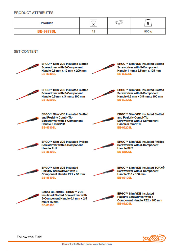 BAHCO ERGO™ Szigetelt csavarhúzó készlet VDE (1000 V) (12 részes)