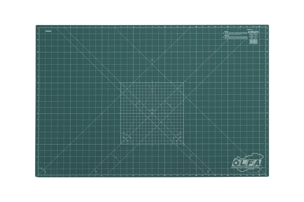 OLFA CM-A1 - Vágóalátét. 92 x 61 cm-es, 2 mm vastagságú, speciális három rétegű "öngyógyuló" vágólap. A vágóalátét egyik oldala inch, másik oldala centiméter beosztású, valamint a leggyakrabban használt szögek is jelölve vannak. Egyaránt használható körpengés foltvarró "patchwork", 9 mm-es standard és dekorációs késekkel.