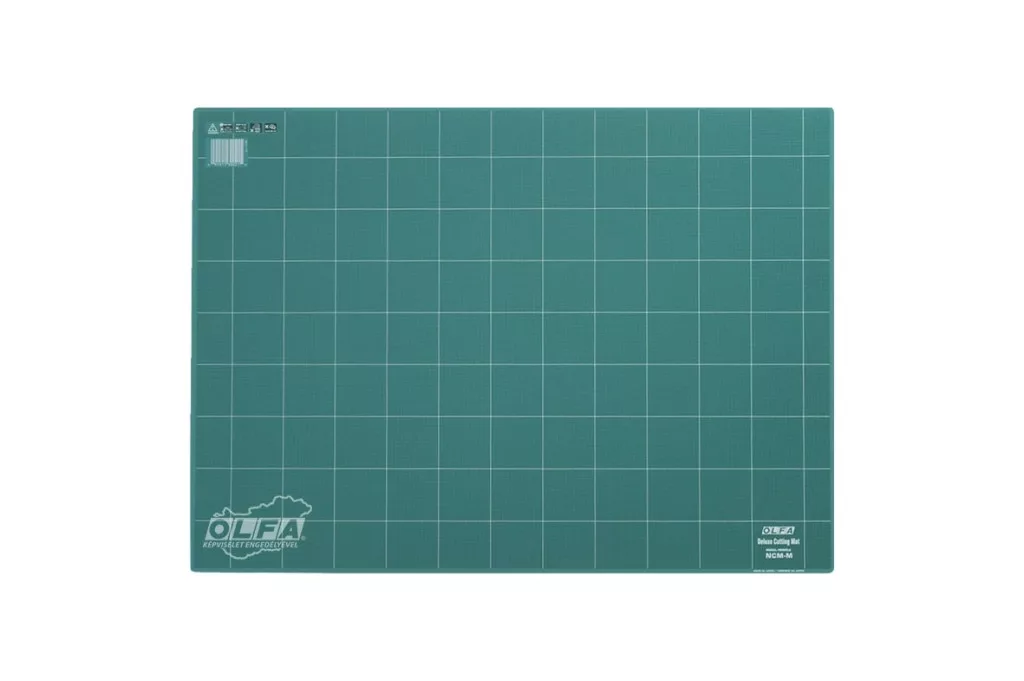 OLFA NCM-M - Deluxe Vágóalátét. 62 x 45 cm-es, 3 mm vastagságú, speciális három rétegű "öngyógyuló" vágólap. A vágóalátéten 5 cm-es beosztású rácsvonal található. Egyaránt használható körpengés foltvarró "patchwork", 9 mm-es és 18 mm-es standard valamint dekorációs késekkel.