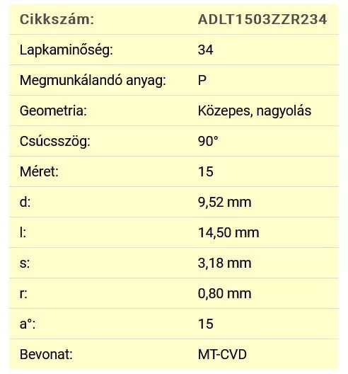 Plăcuță amovibilă FERVI, universală, ADLT1503ZZR234. Acoperit MT-CVD. Excelent pentru prelucrarea degroșată a oțelului. Stratul de bază rezistent și acoperirea multistrat garantează o rezistență extremă la uzură. Se recomandă utilizarea vitezelor de tăiere mici spre medii. Număr pagină catalog 42:201 Descriere suplimentară în limba engleză: